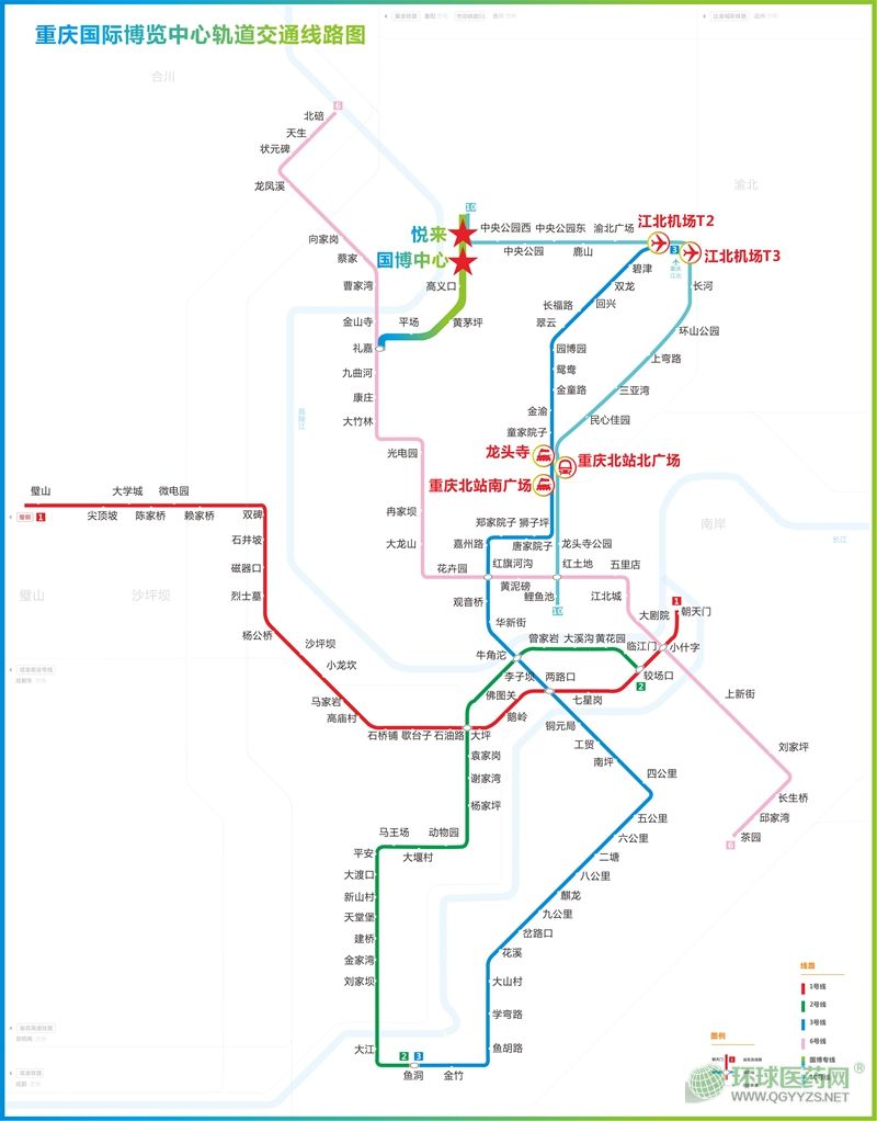 10號(hào)線:鯉魚池—重慶北站北廣場(chǎng)——江北機(jī)場(chǎng)T3/T2航站樓—悅來(lái)(1號(hào)出口國(guó)博中心)