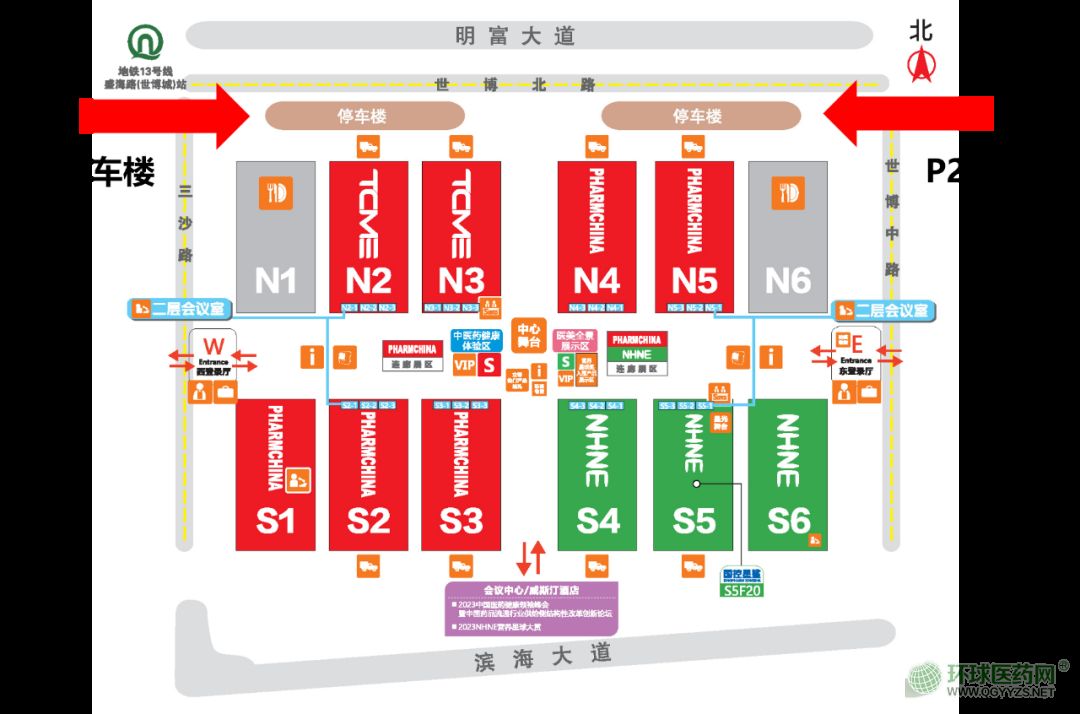 前往展館打開導(dǎo)航軟件,輸入“世博城國際展覽中心西登錄廳”,即可抵達展館。P1、P2停車樓均可停車。