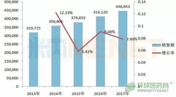 據(jù)米內(nèi)網(wǎng)數(shù)據(jù)顯示,2016年起苯磺酸氨氯地平片在中國城市公立醫(yī)院、縣級公立醫(yī)院、城市社區(qū)及鄉(xiāng)鎮(zhèn)衛(wèi)生院(簡稱中國公立醫(yī)療機構)終端銷售額已經(jīng)突破40億元關口,2017年上漲至44.67億元,增長率為7.86%。