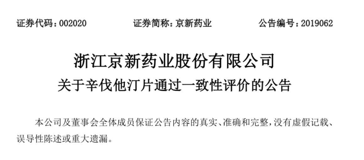 9月11日,京新藥業(yè)發(fā)布公告,公司于近日收到國家藥監(jiān)局批準(zhǔn)核發(fā)的化學(xué)藥品“辛伐他汀片(20mg)”的《藥品補(bǔ)充申請批件》,該藥品通過仿制藥一致性評價(jià)。