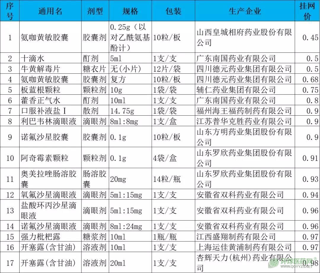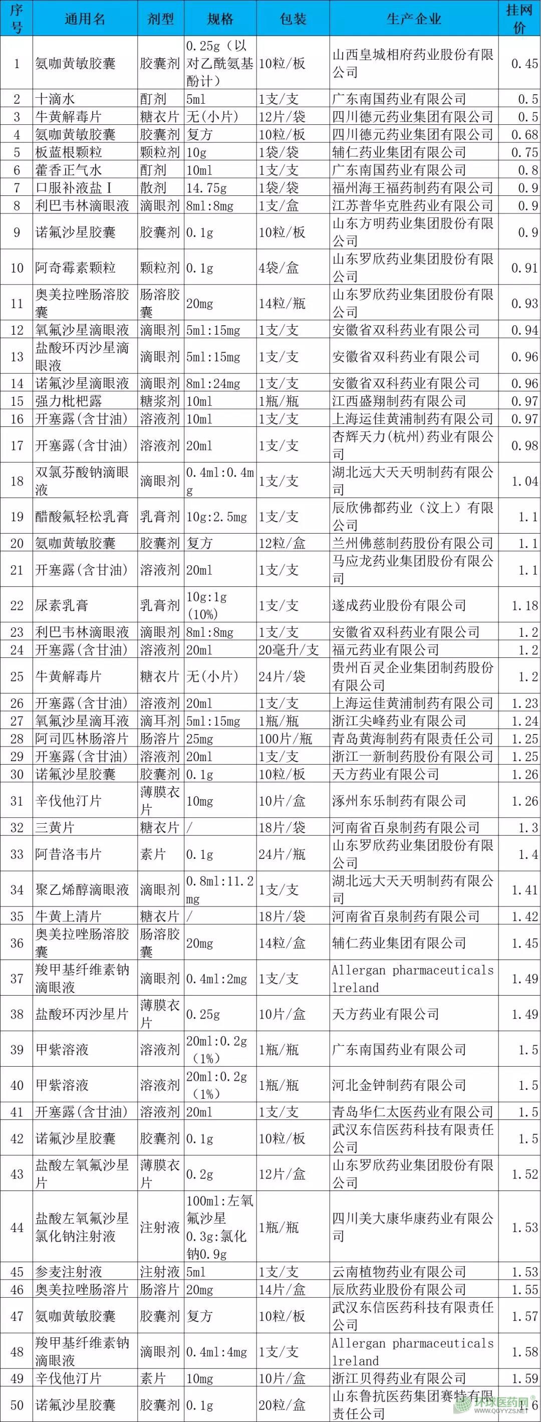 附:山東省掛網(wǎng)價(jià)不足3元且藥店常賣的藥品名單