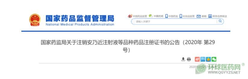 3月17日,國家藥監(jiān)局發(fā)布“關(guān)于注銷安乃近注射液等品種藥品注冊(cè)證書的公告(2020年第29號(hào))”。