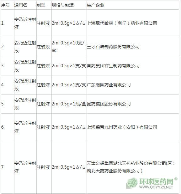 附件:已在我省掛網(wǎng)銷售的安乃近注射液信息表