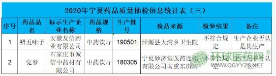 通告稱,經(jīng)寧夏藥品檢驗(yàn)研究院和固原市市場(chǎng)監(jiān)管檢驗(yàn)檢測(cè)中心檢驗(yàn),檢驗(yàn)結(jié)果符合規(guī)定的有233個(gè)品種640批次,檢驗(yàn)結(jié)果不符合規(guī)定的有2個(gè)品種2批次。具體如下: