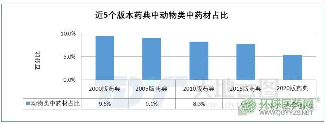 圖1:近5個(gè)版本藥典中動(dòng)物類(lèi)中藥材占比