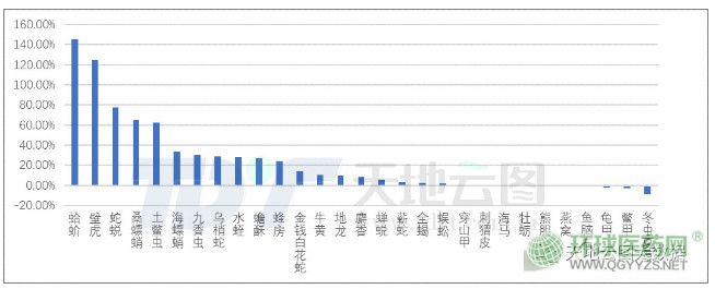 圖3:2020-2021年常用動(dòng)物類(lèi)中藥材行情漲跌情況
