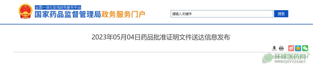 5月4日,國家藥監(jiān)局發(fā)布最新藥品批準(zhǔn)證明文件。