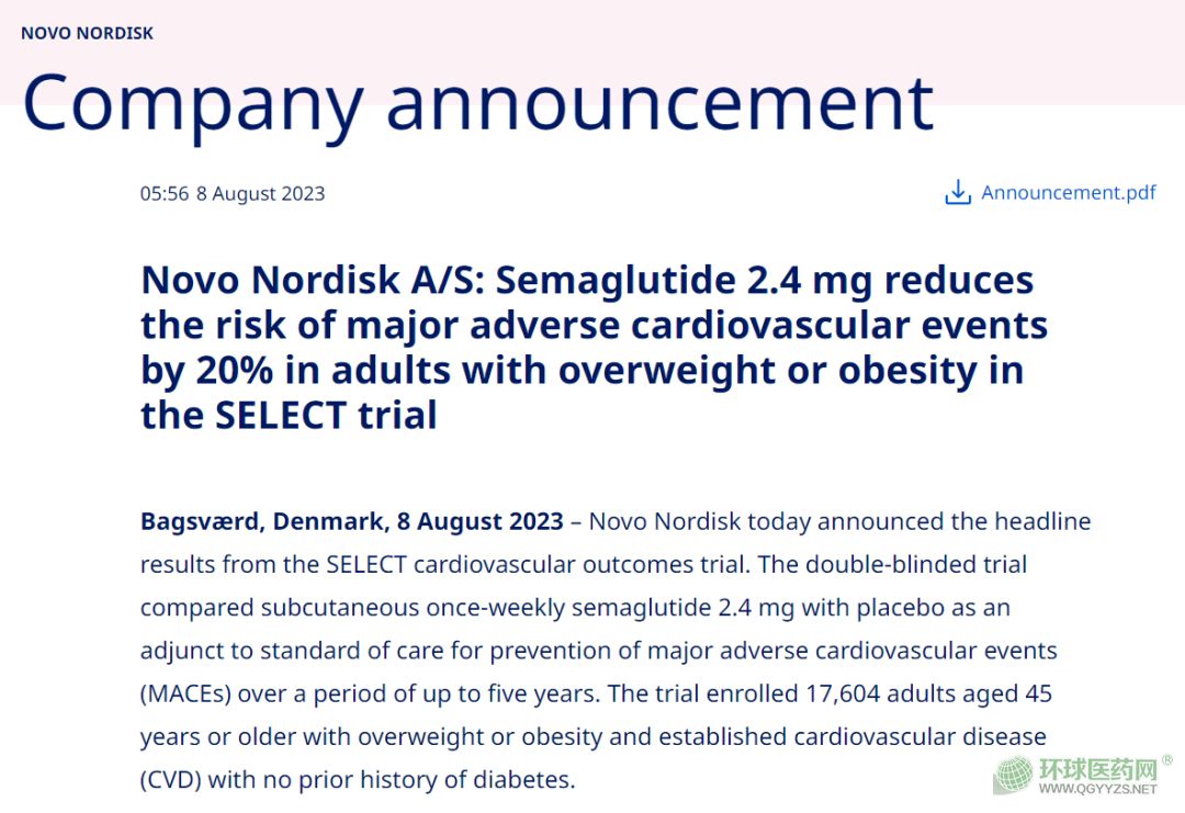 在禮來發(fā)布財報的同日,另一家代謝病藥物巨頭諾和諾德宣布,司美格魯肽2.4mg劑量治療可以將超重/肥胖患者的副作用心血管事件風險降低20%,當日股價大漲17%,市值首次突破4000億美元。