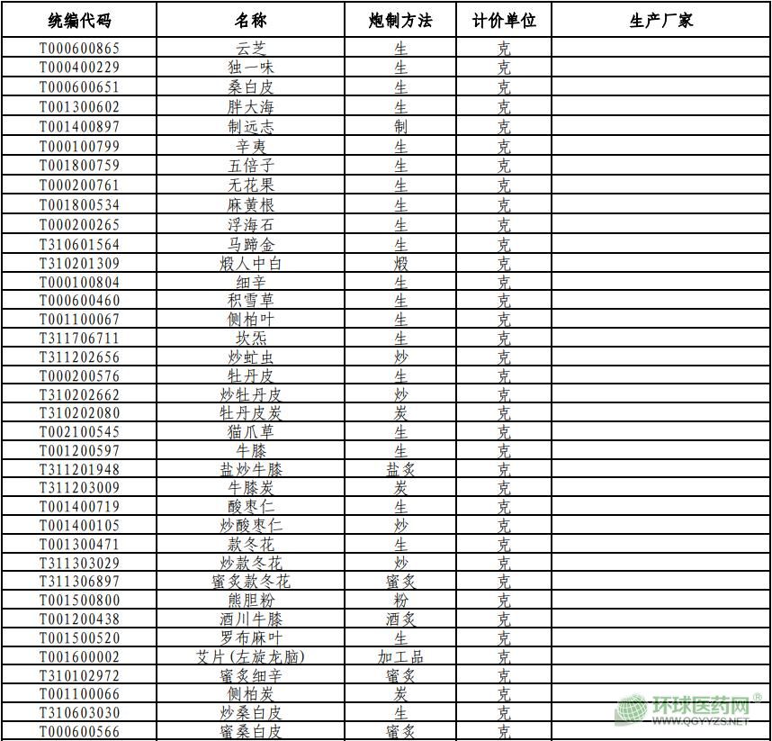 1、部分中藥飲片動(dòng)態(tài)調(diào)整信息表