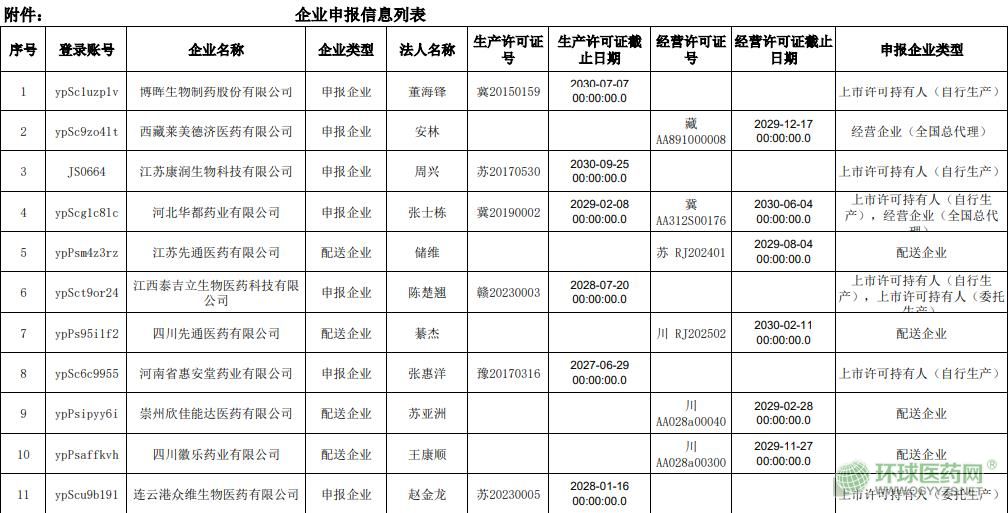 已完成申報(bào)的企業(yè)信息(詳見(jiàn)附件)。