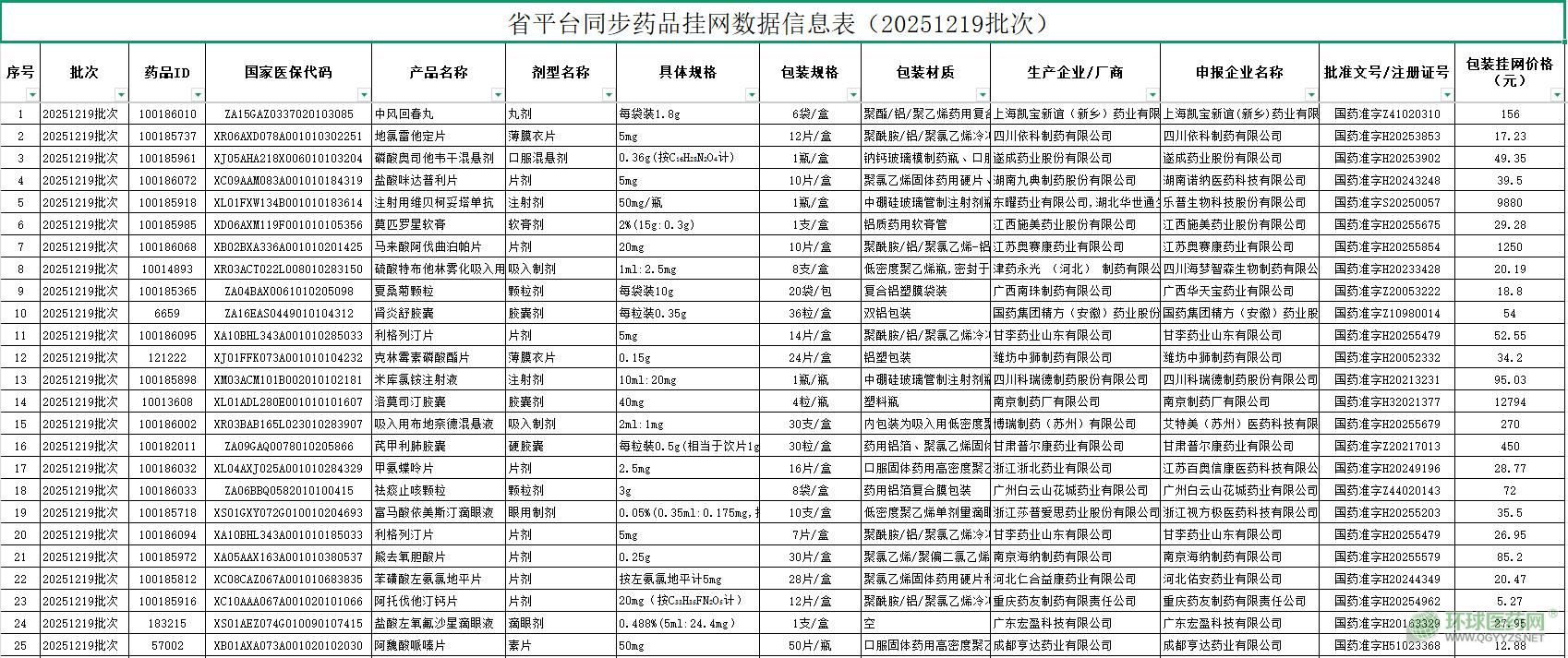 附件:省平臺(tái)同步藥品掛網(wǎng)數(shù)據(jù)信息表(20251219批次)