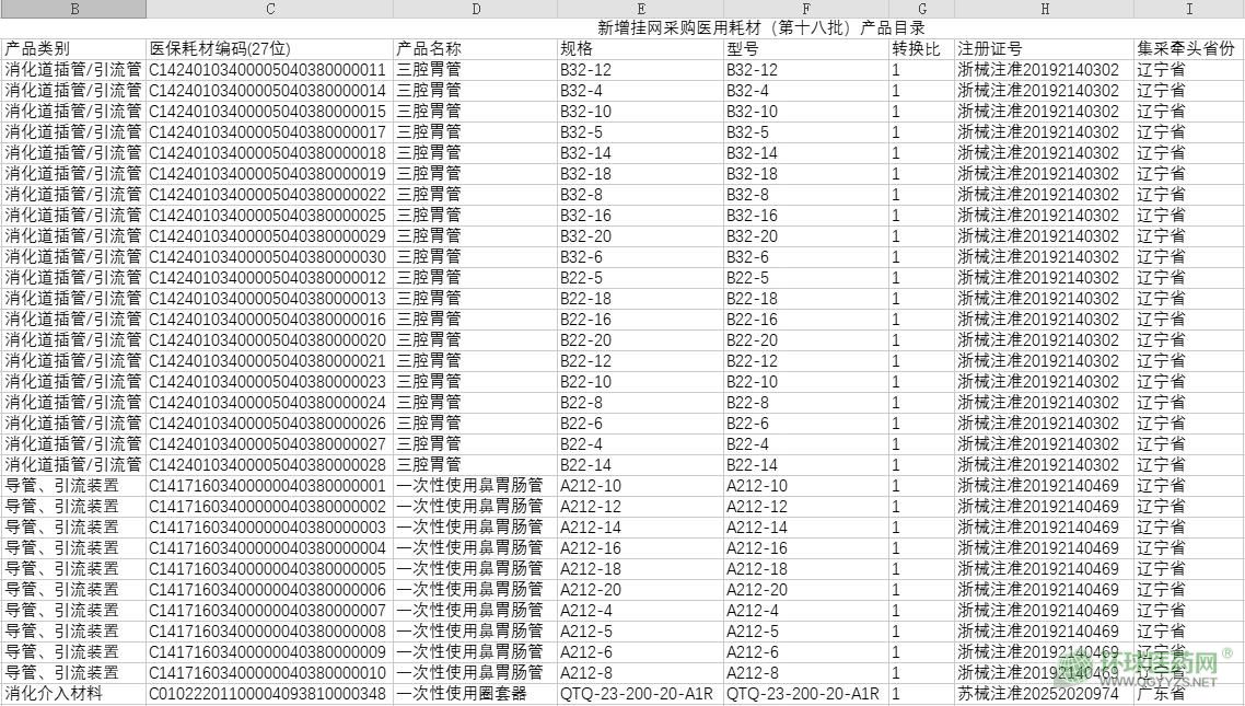 附件:新增掛網(wǎng)采購醫(yī)用耗材(第十八批)產(chǎn)品目錄.xls