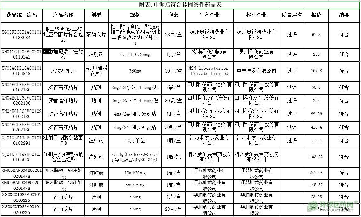 附件:申投訴后符合掛網(wǎng)條件藥品表