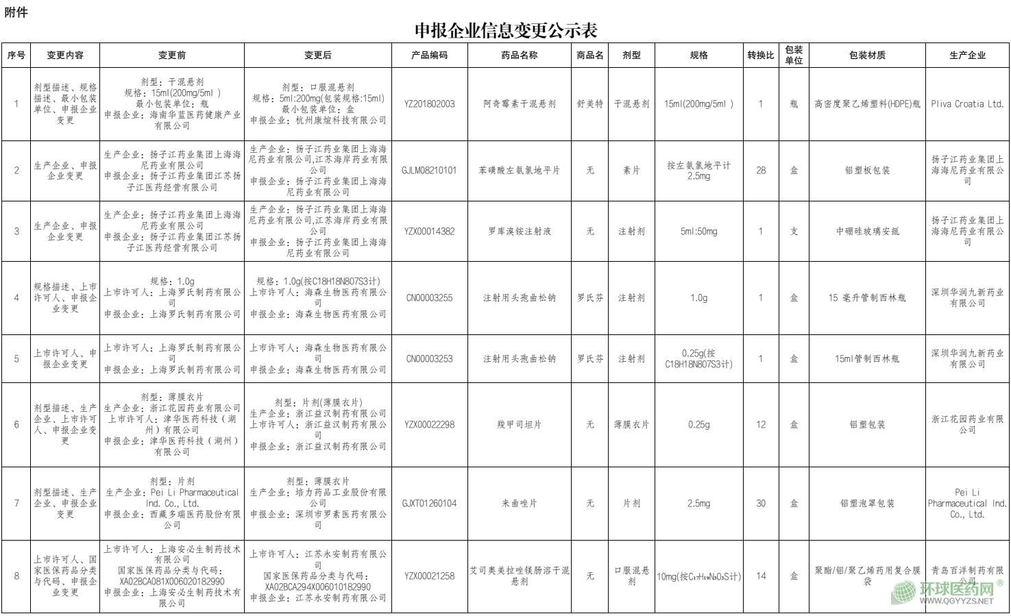 根據(jù)《江蘇省醫(yī)療保障局關(guān)于做好藥品集中采購(gòu)省級(jí)入圍企業(yè)和產(chǎn)品信息變更管理工作的通知》(蘇醫(yī)保發(fā)〔2019〕51號(hào))的要求,企業(yè)遞交的掛網(wǎng)藥品申報(bào)企業(yè)信息變更申請(qǐng)符合有關(guān)規(guī)定,現(xiàn)予以公示(詳見(jiàn)附件)。