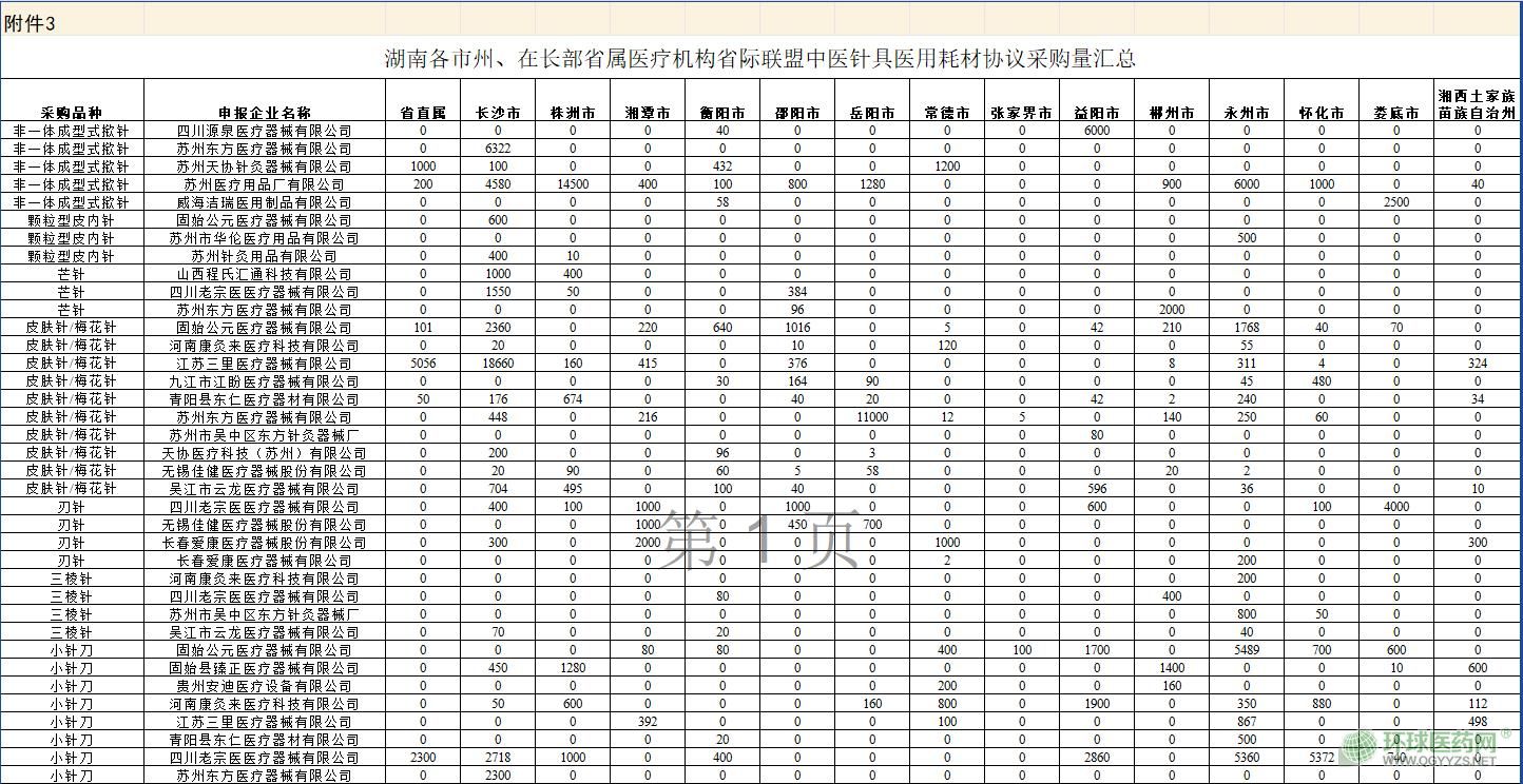 3.湖南省各市州、在長(zhǎng)部省屬醫(yī)療機(jī)構(gòu)省際聯(lián)盟(廣西)中醫(yī)針具類醫(yī)用耗材協(xié)議采購(gòu)量匯總