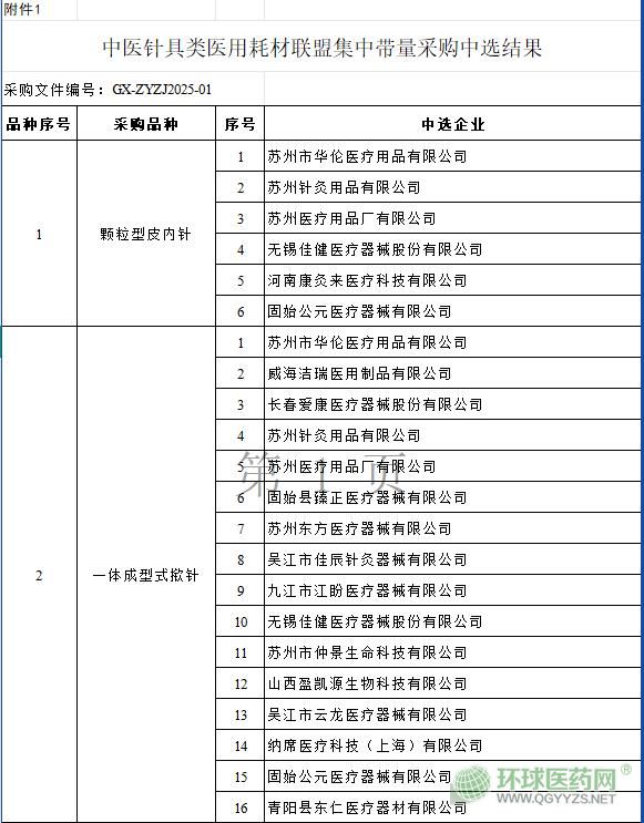 附件:1.中醫(yī)針具類醫(yī)用耗材聯(lián)盟(廣西)集中帶量采購(gòu)中選結(jié)果