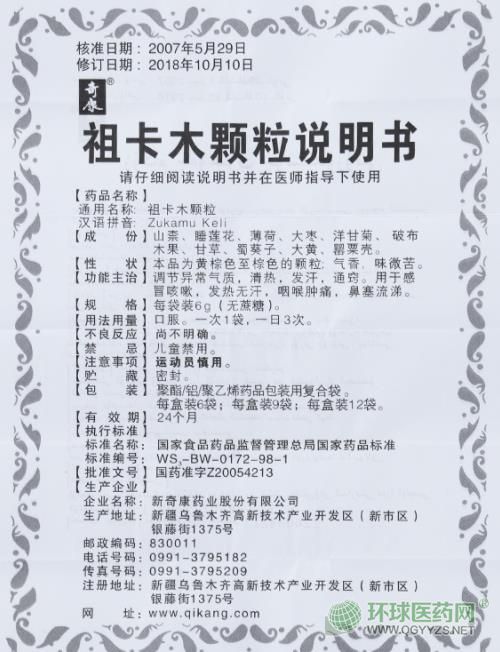 【藥品名稱】通用名稱:祖卡木顆粒