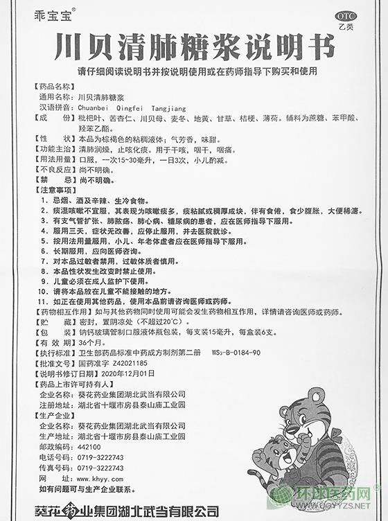 葵花小兒川貝清肺糖漿說(shuō)明書(shū)(乖寶寶牌)