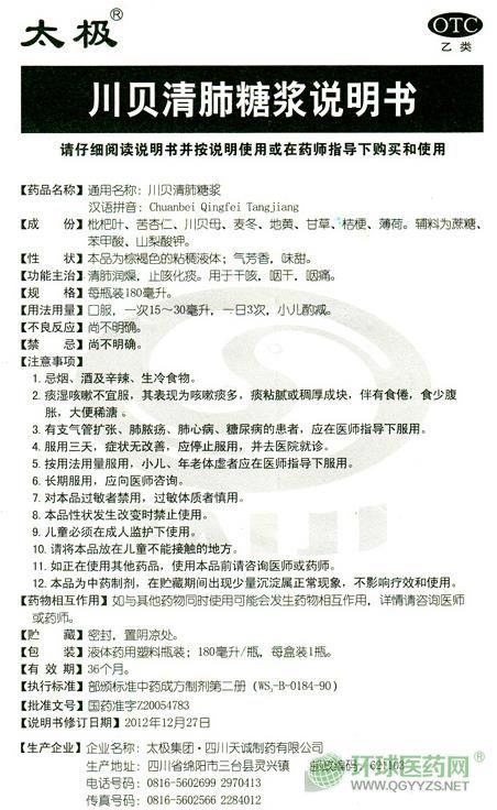 太極小兒川貝清肺糖漿說(shuō)明書(shū)