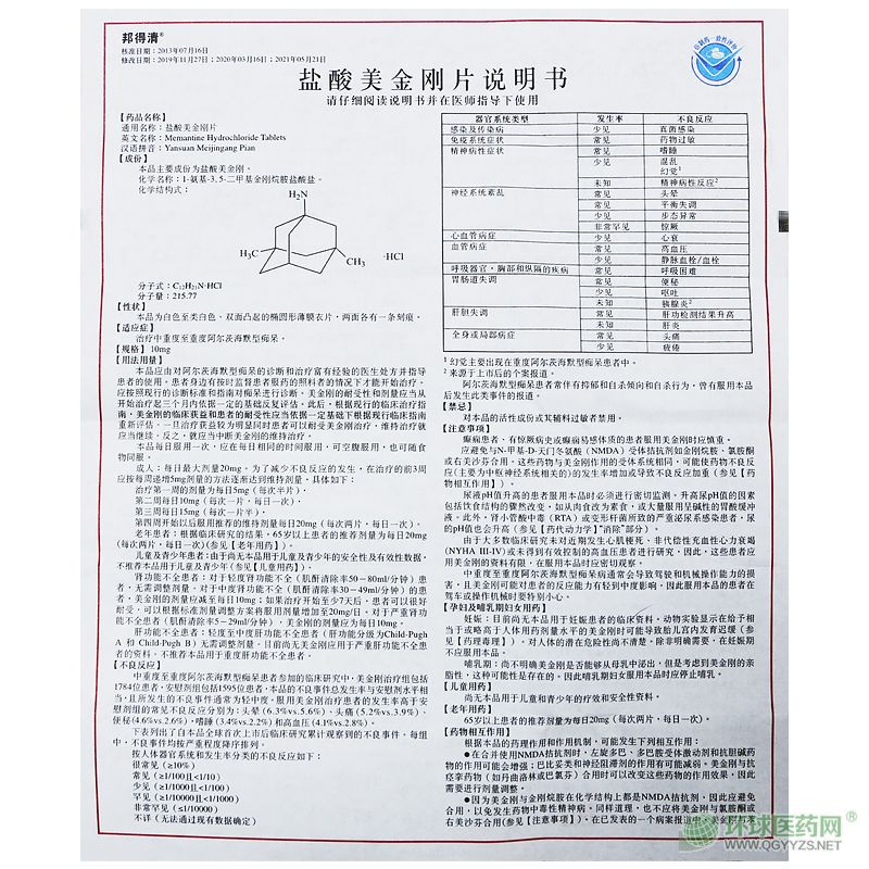 邦得清鹽酸美金剛片說(shuō)明書(shū)(2021版)