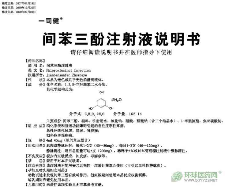 【藥品名稱】通用名稱:間苯三酚注射液