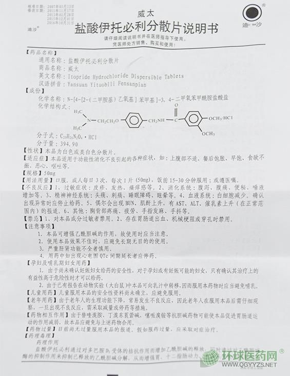 【通用名稱(chēng)】鹽酸伊托必利分散片