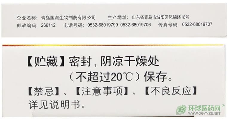 【生產(chǎn)企業(yè)】企業(yè)名稱:青島國海生物制藥有限公司