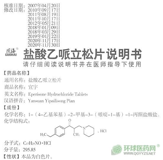 【藥品名稱】通用名稱:鹽酸乙哌立松片