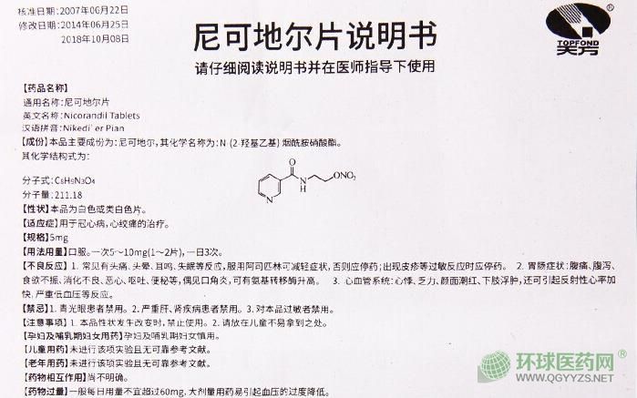 【藥品名稱】通用名稱:尼可地爾片