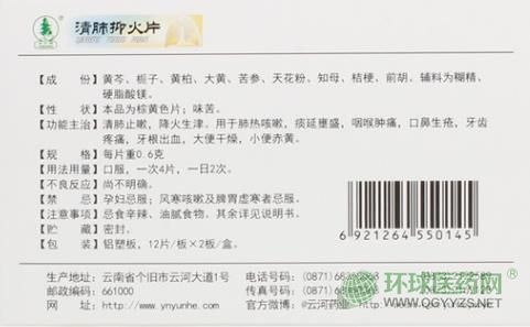 【成份】黃芩桅子黃柏大黃苦參天花粉知母桔梗前胡