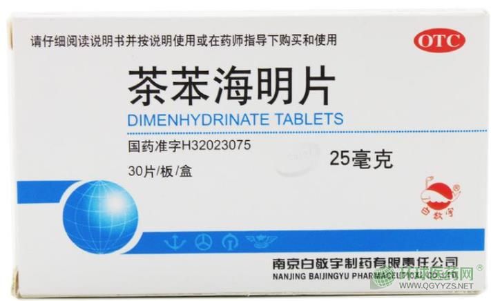 【成份】本品主要成分是茶苯海明。化學名為:1,3-二甲基-8-氯-1H-2,6-二酮和N,N-二甲基-2-(二苯基甲氧基)乙胺。