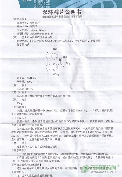 【藥品名稱】通用名稱:雙環(huán)醇片