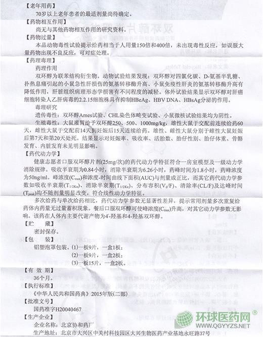 北京協(xié)和百賽諾雙環(huán)醇片說明書圖片版