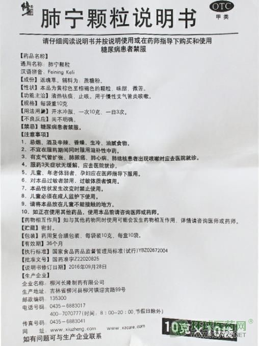 修正牌肺寧顆粒使用說明書圖片版(2016年版)