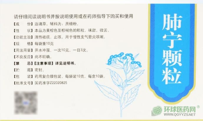 【藥品名稱】通用名稱:肺寧顆粒