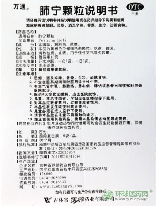 萬通牌肺寧顆粒(返魂草)說明書圖片版(2011年版)
