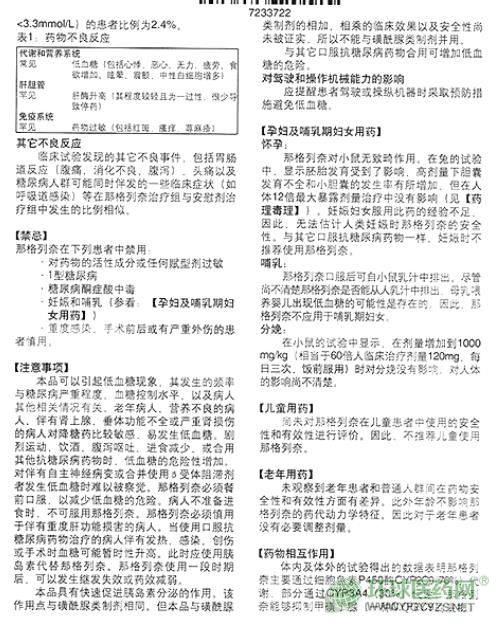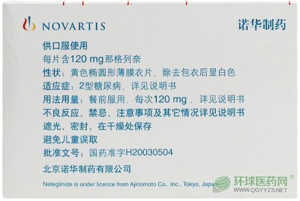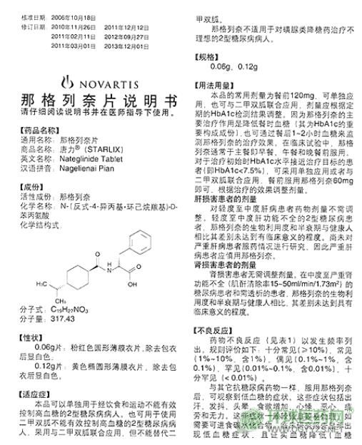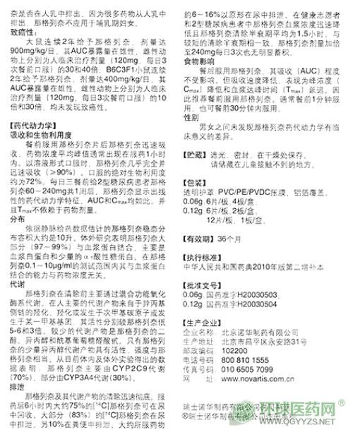 諾華制藥那格列奈片唐力說明書圖片版(2013版)