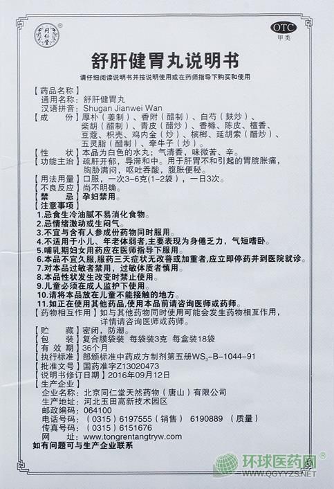 同仁堂舒肝健胃丸說明書圖片版(2016年版)