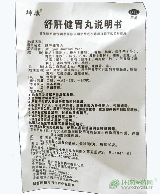商丘金馬舒肝健胃丸坤康說明書文字版