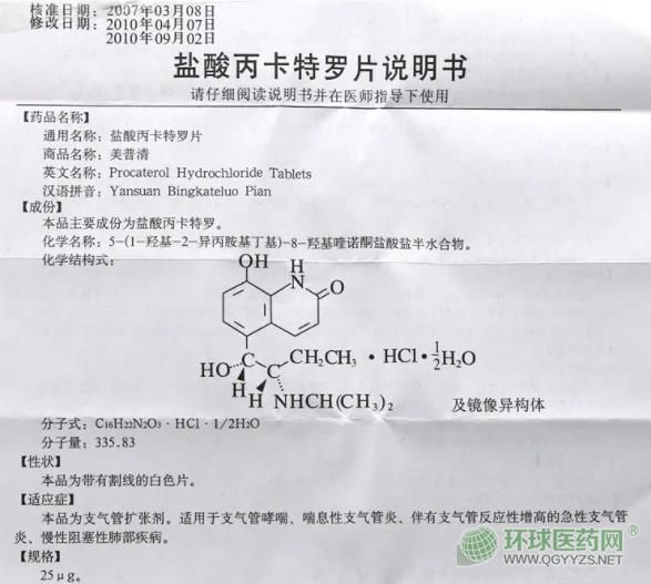 美普清鹽酸丙卡特羅片說明書文字版