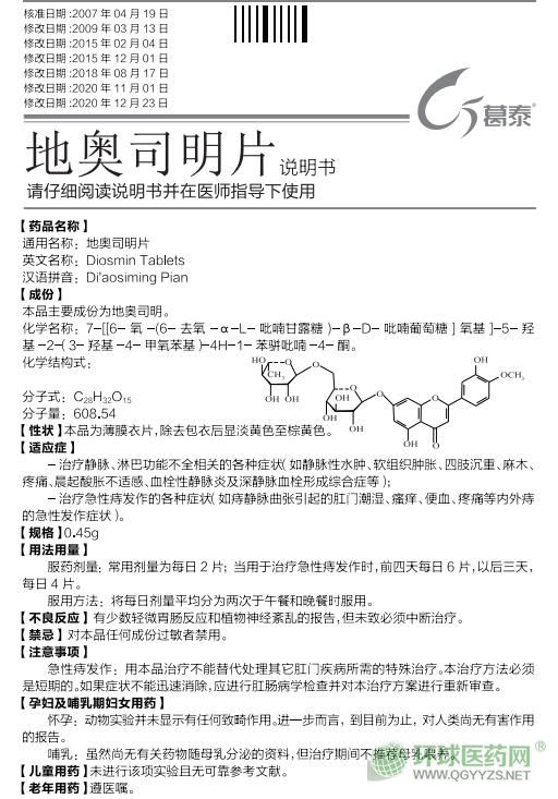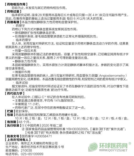 【成 份】本品主要成份為地奧司明。