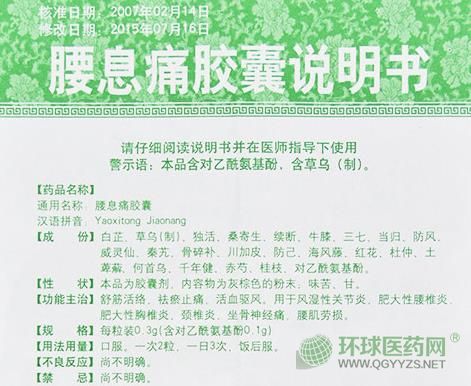 江西藥都仁和腰息痛膠囊說明書圖片版