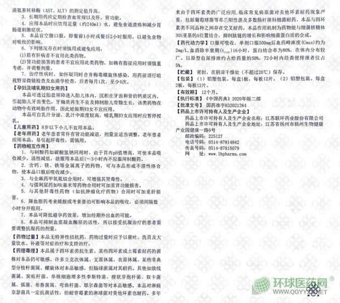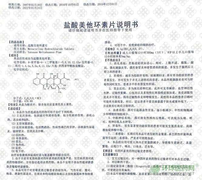 聯(lián)環(huán)合生壽鹽酸美他環(huán)素片說明書圖片版