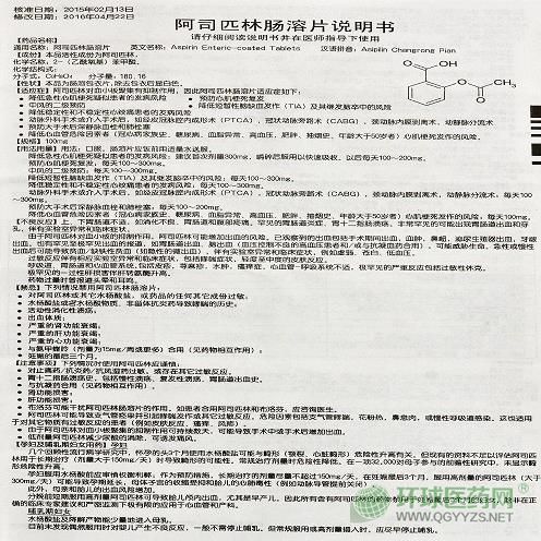 歐意阿比康阿司匹林腸溶片說明書文字版