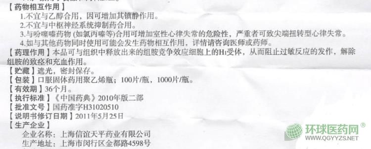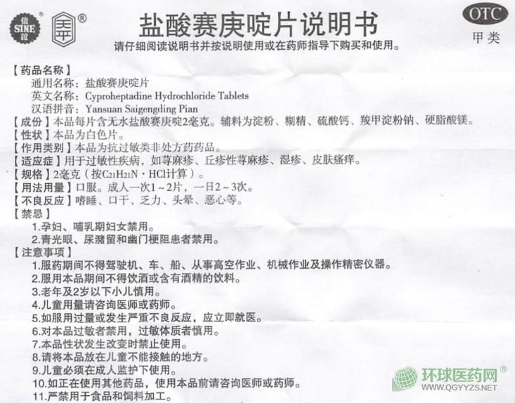 上海信誼鹽酸賽庚啶片說明書圖片版