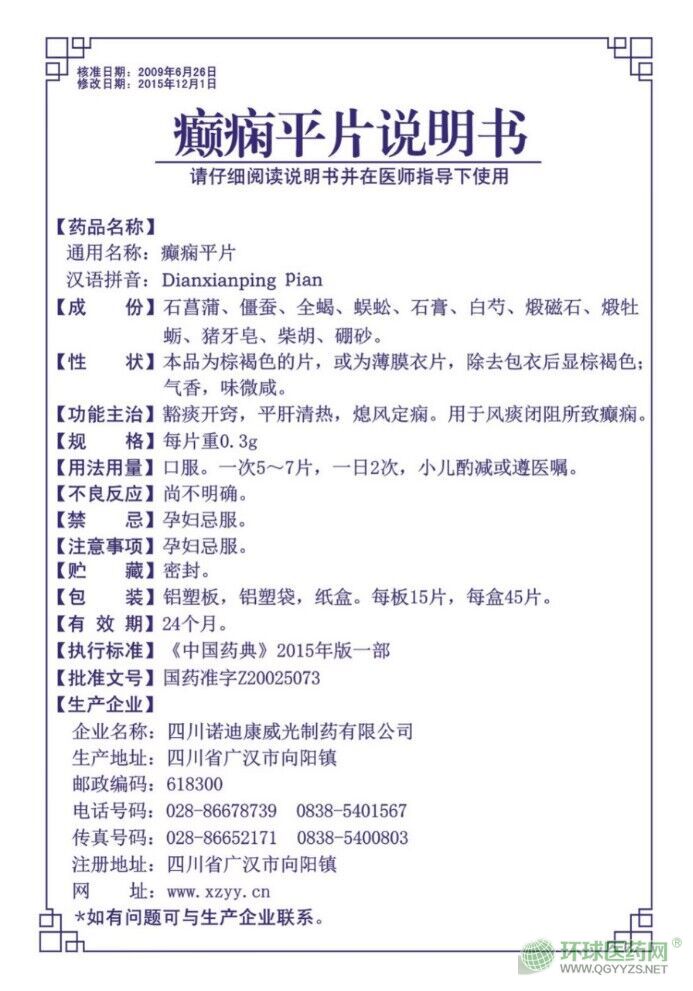 威光癲癇平片說(shuō)明書(shū)圖片版