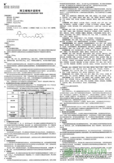 上海奧派阿立哌唑片說明書(10mg)圖片版