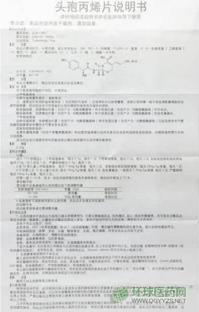 通用名:頭孢丙烯片