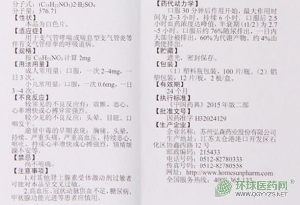 江蘇弘森藥業(yè)硫酸沙丁胺醇片說(shuō)明書(shū)圖片版
