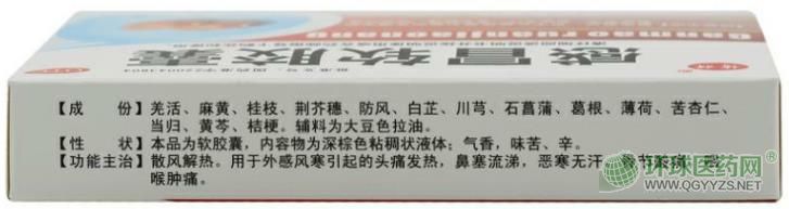 【功能主治】散風(fēng)解熱。用于外感風(fēng)寒引起的頭痛發(fā)熱,鼻塞流涕,惡寒無汗,骨節(jié)酸痛,咽喉腫痛。
